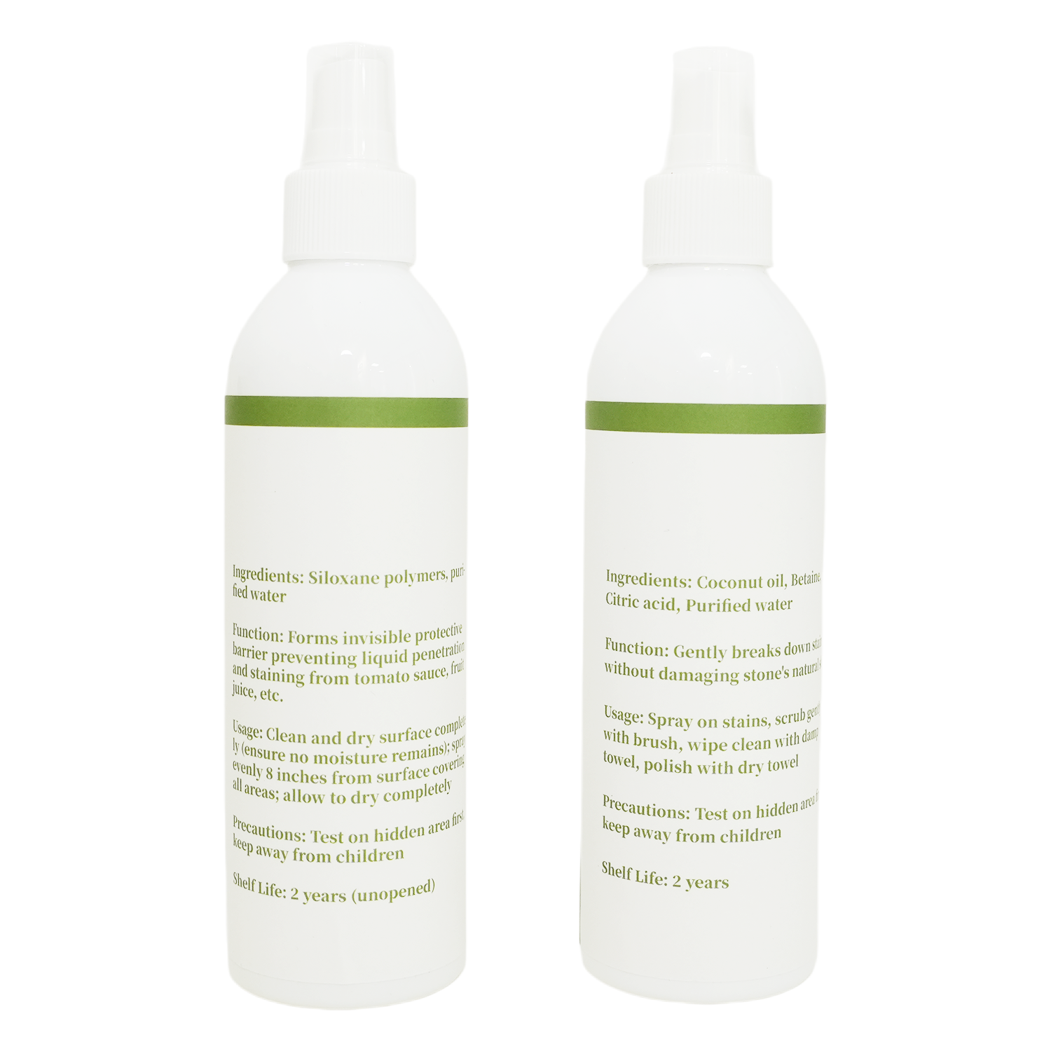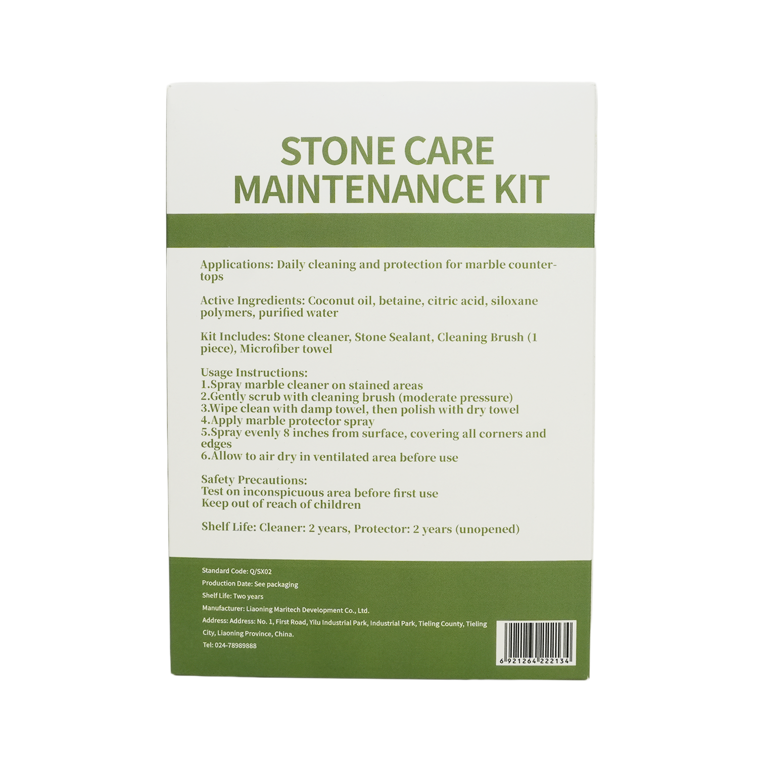 使用方法:喷洒于污渍处,用清洁刷轻刷,湿毛巾擦净后,干毛巾抛光大理石防水防护剂 成分:硅氧烷聚合物,纯净水等功能:形成透明保护层,防止番茄酱、果汁等液体渗透染色。使用方法:清洁并干燥台面(确保无残留水分);距表面20cm均匀喷洒,覆盖所有区域;干燥后即可