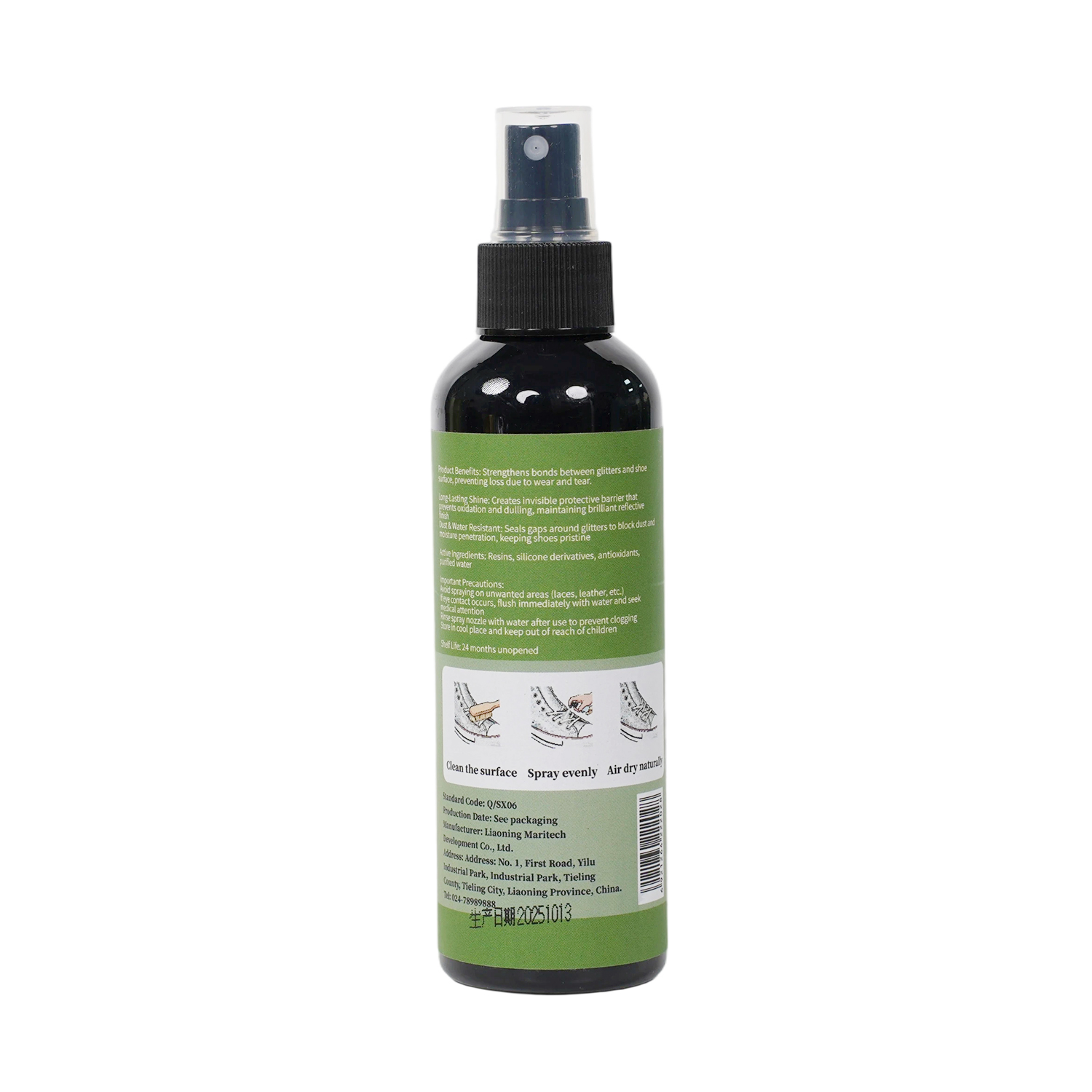 均匀喷涂:距鞋面15-20cm处喷施,覆盖所有亮片区域(避免过量)。