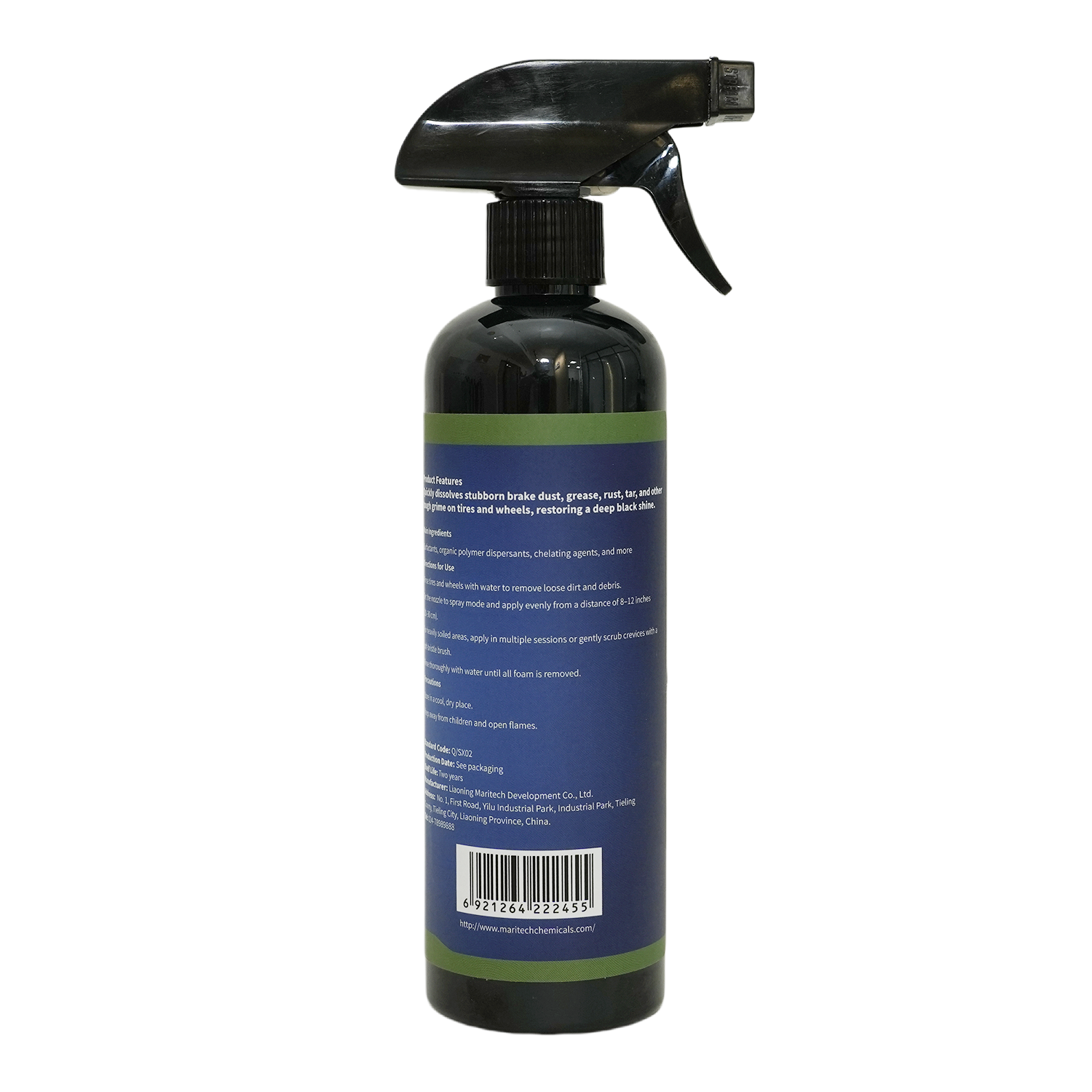 迅速溶解轮胎及轮毂表面的制动器粉尘、油污、铁锈和焦油等顽固污渍,恢复轮胎黑亮光泽。