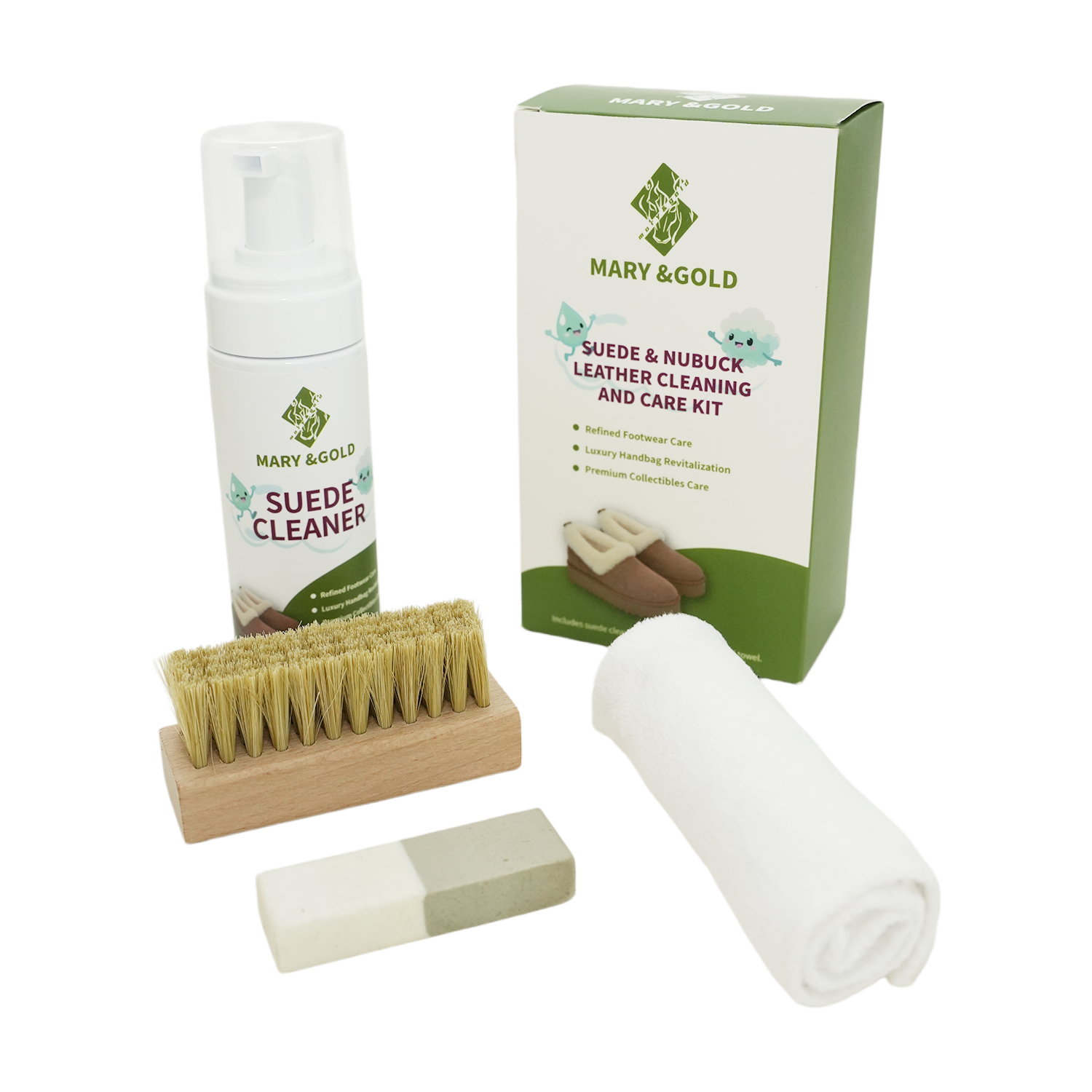 本套装专为麂皮、翻毛皮等绒面皮革设计,采用温和配方与专业工具组合,深层去污的同时保护绒毛质感,避免褪色、发硬等问题。适用于麂皮鞋、包包、沙发等护理,轻松还原皮革柔软触感。