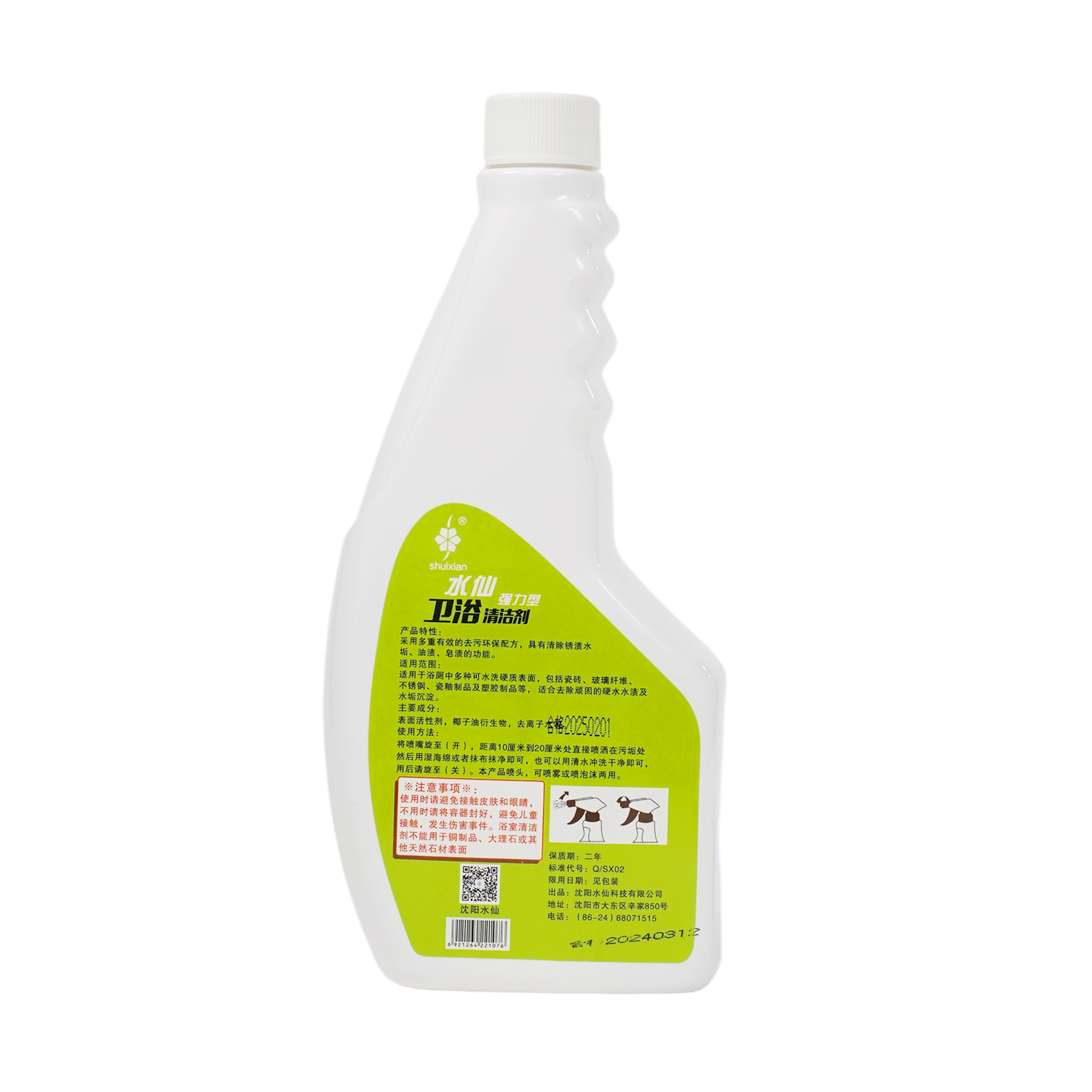适用于浴厕中多种可水洗硬质表面,包括瓷砖、玻璃纤维、不锈钢、瓷釉制品及塑胶制品等,适合去除顽固的硬水水渍及水垢沉淀。