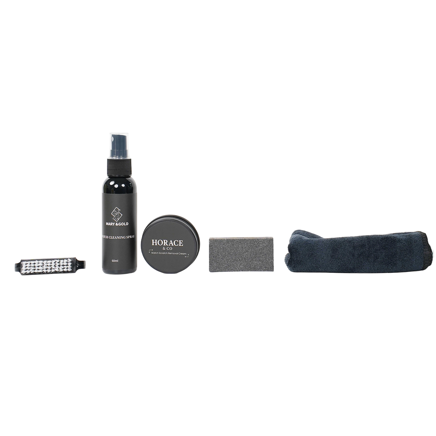 步骤3:清洁将牛角刷浸入水中,并在物品需要清洁的部位喷洒手表清洁剂,充分刷洗,直到完全起泡,确保手表的表链缝隙、表冠周围等顽固污渍也彻底清洁。