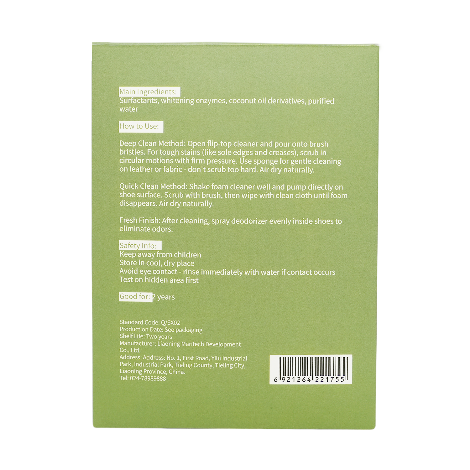鞋内除味,清洁完成后,将鞋内清香剂均匀喷洒在鞋内即可